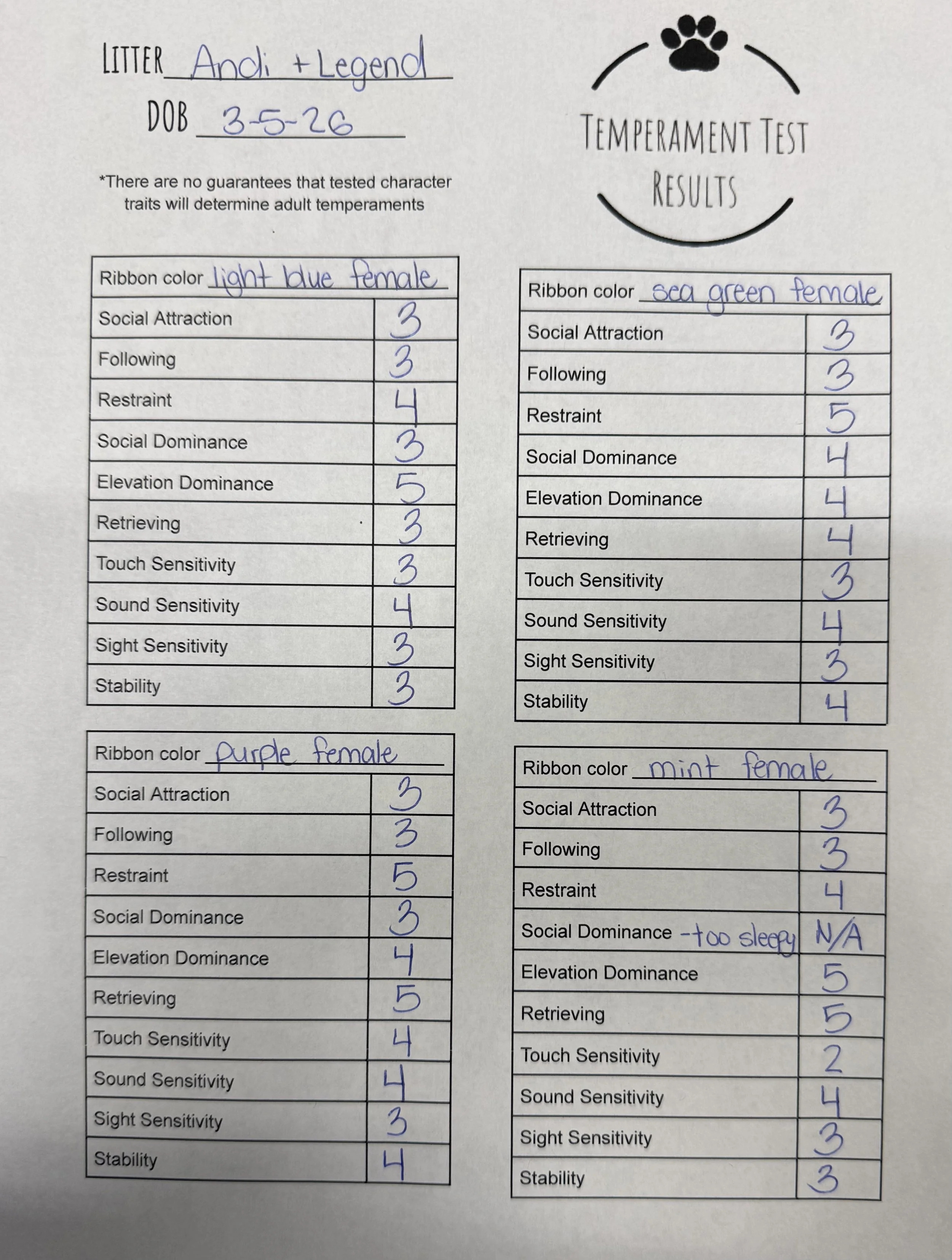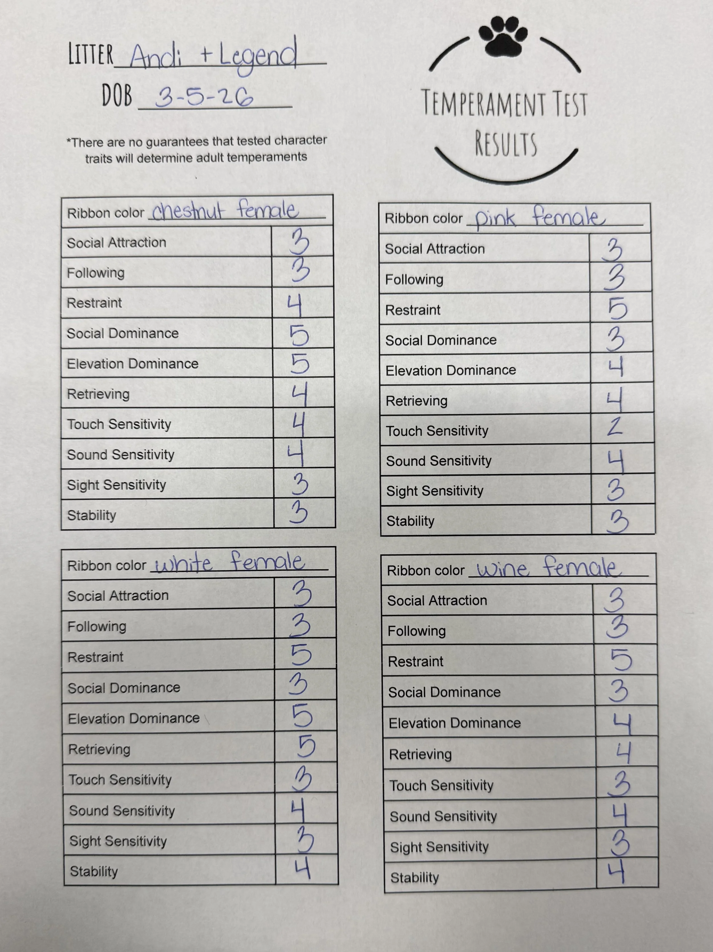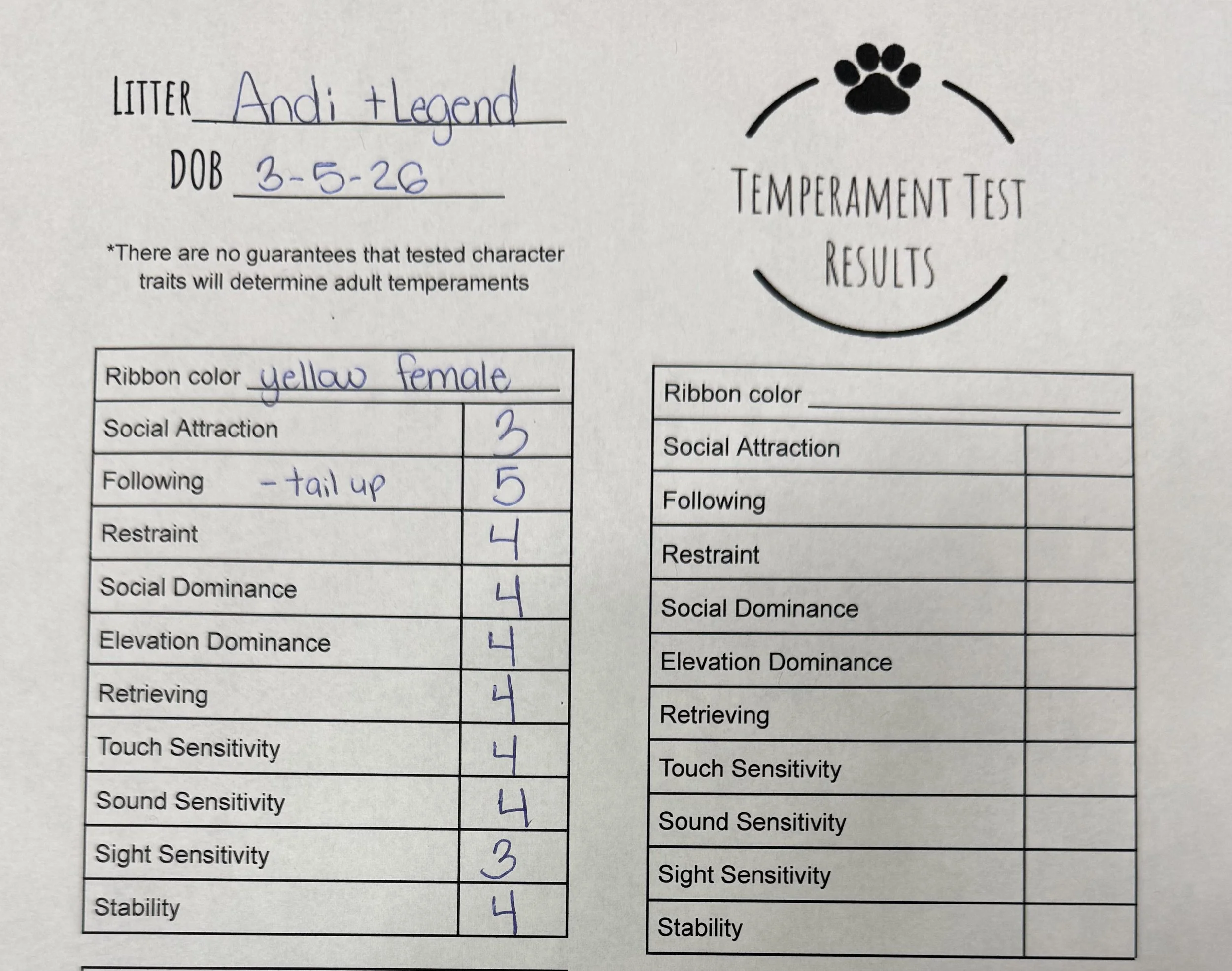Temperament Test Results