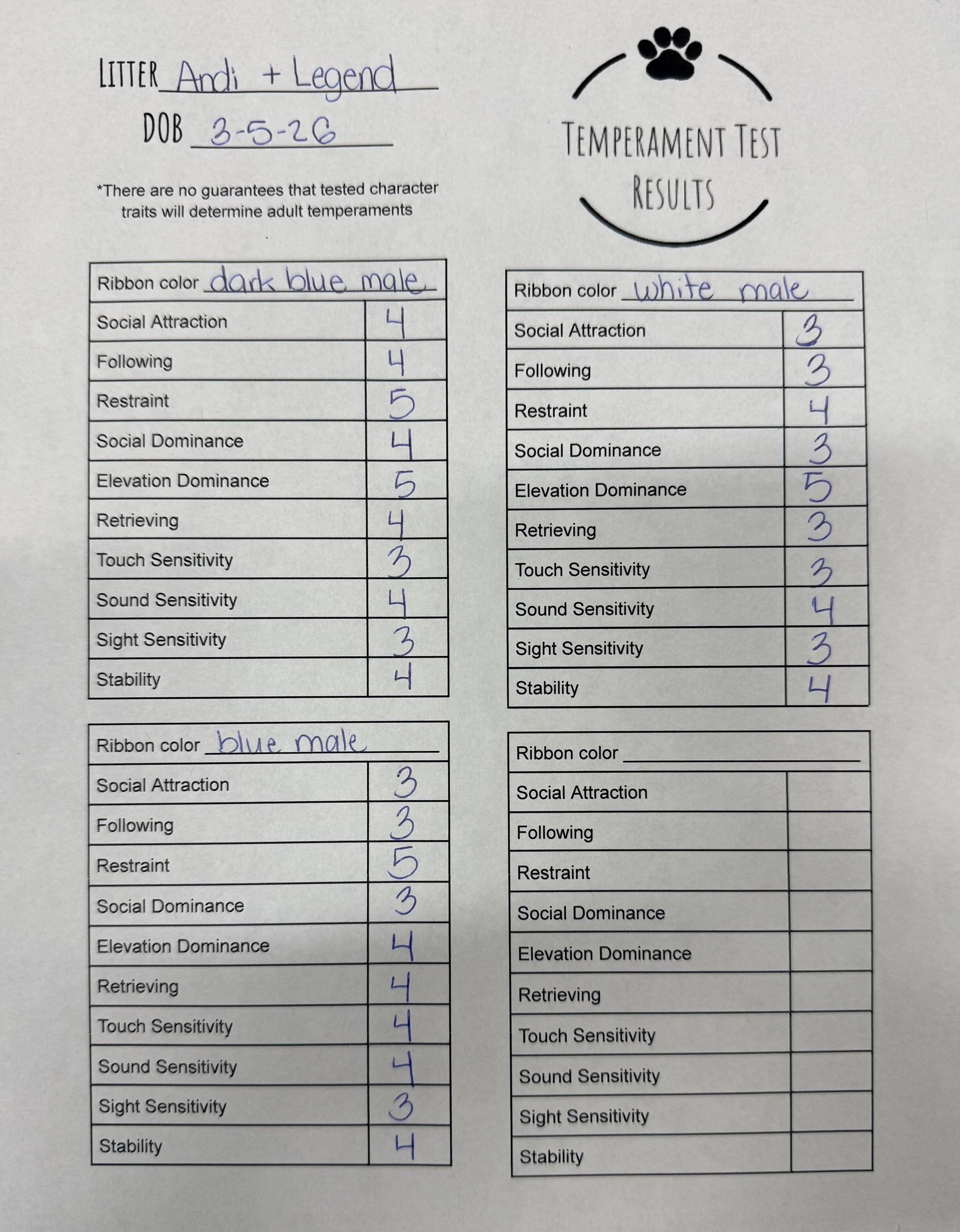 Temperament Test Results