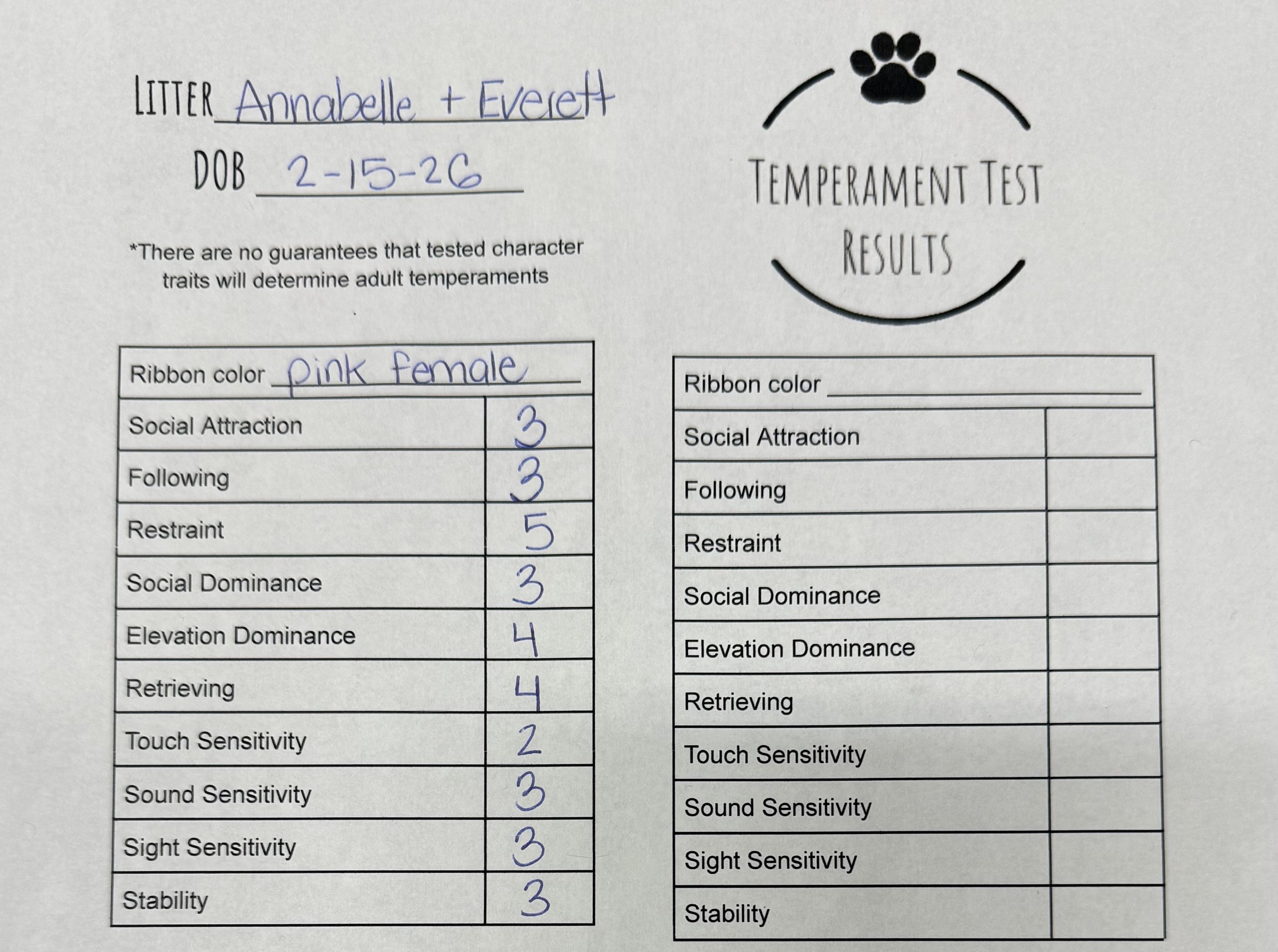 Temperament Test Results