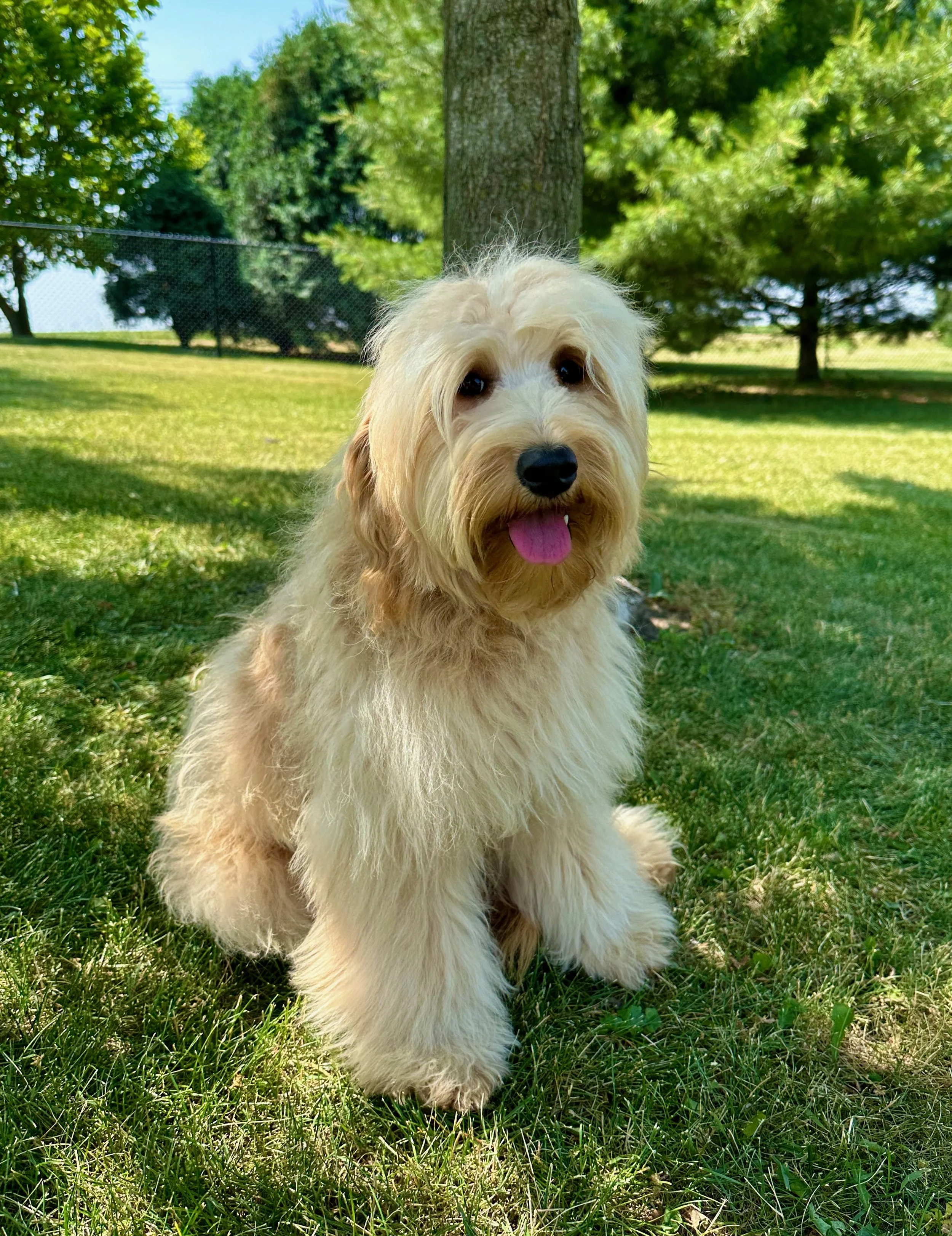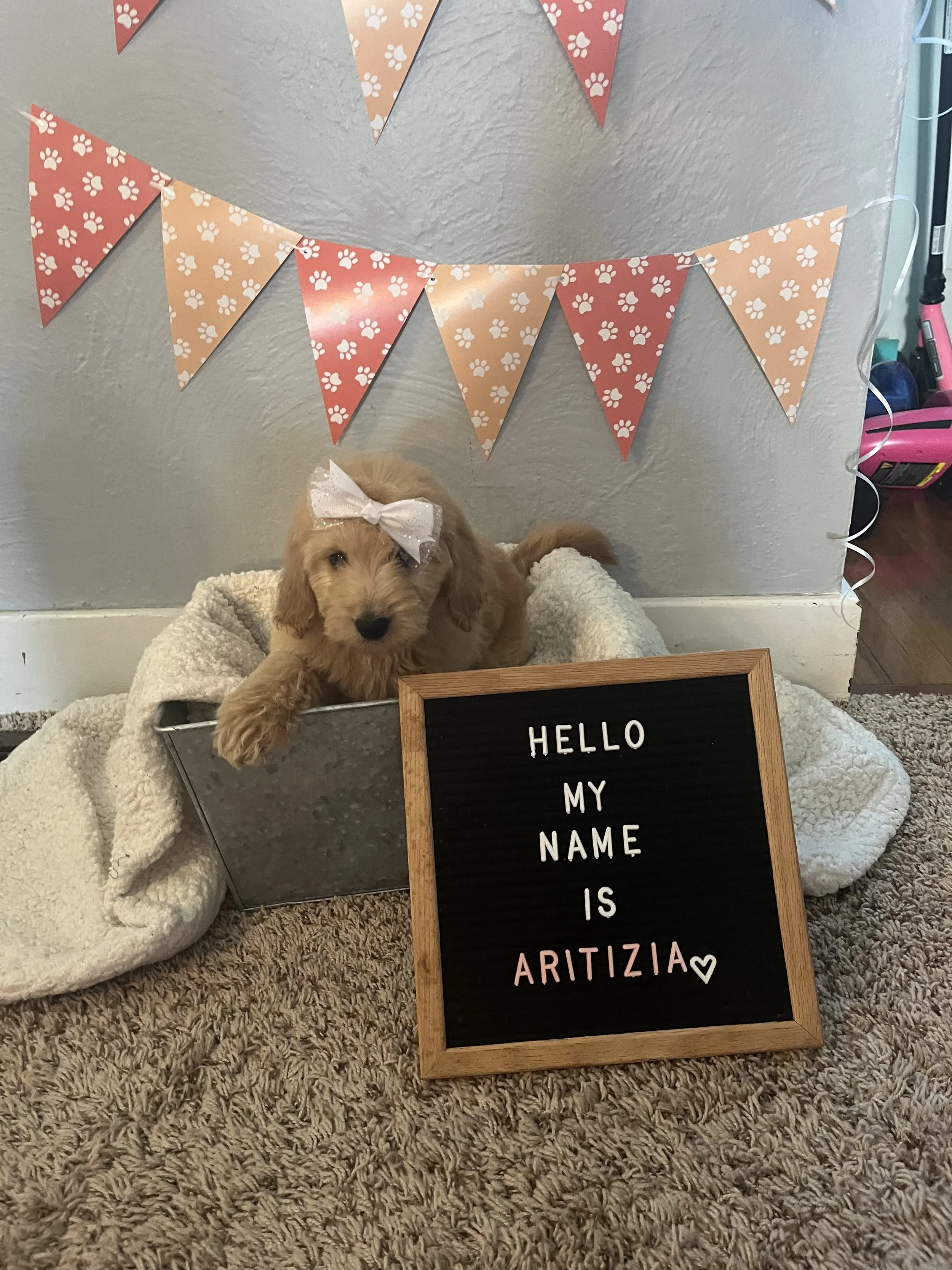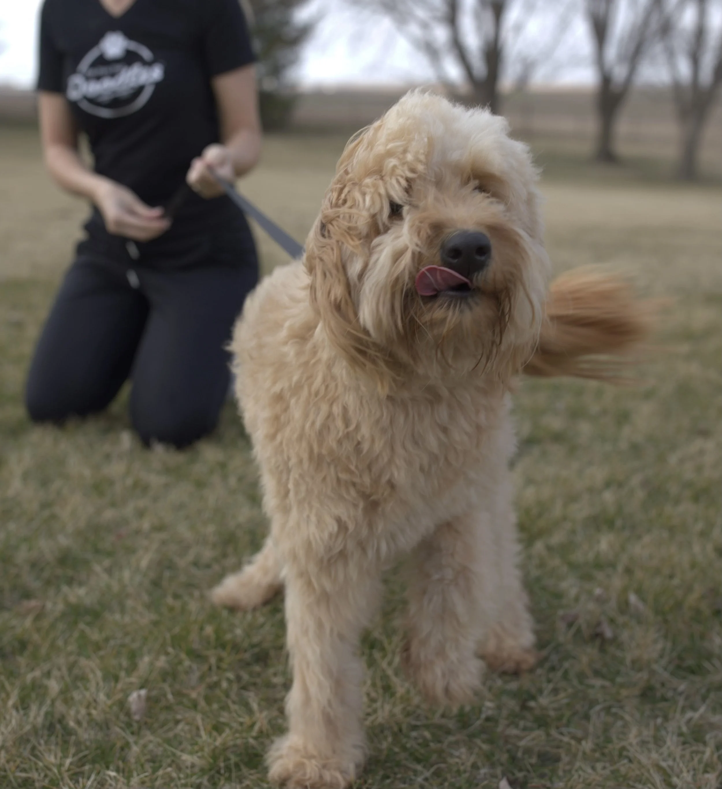 Aritzia is an F1 Mini English Goldendoodle. She is OFA Hips Good, OFA Elbows Normal, OFA Eyes Normal, OFA Heart Normal, OFA Patella Normal. vWD and PRA-PRCD clear through parentage. Animal Genetics DNA results!