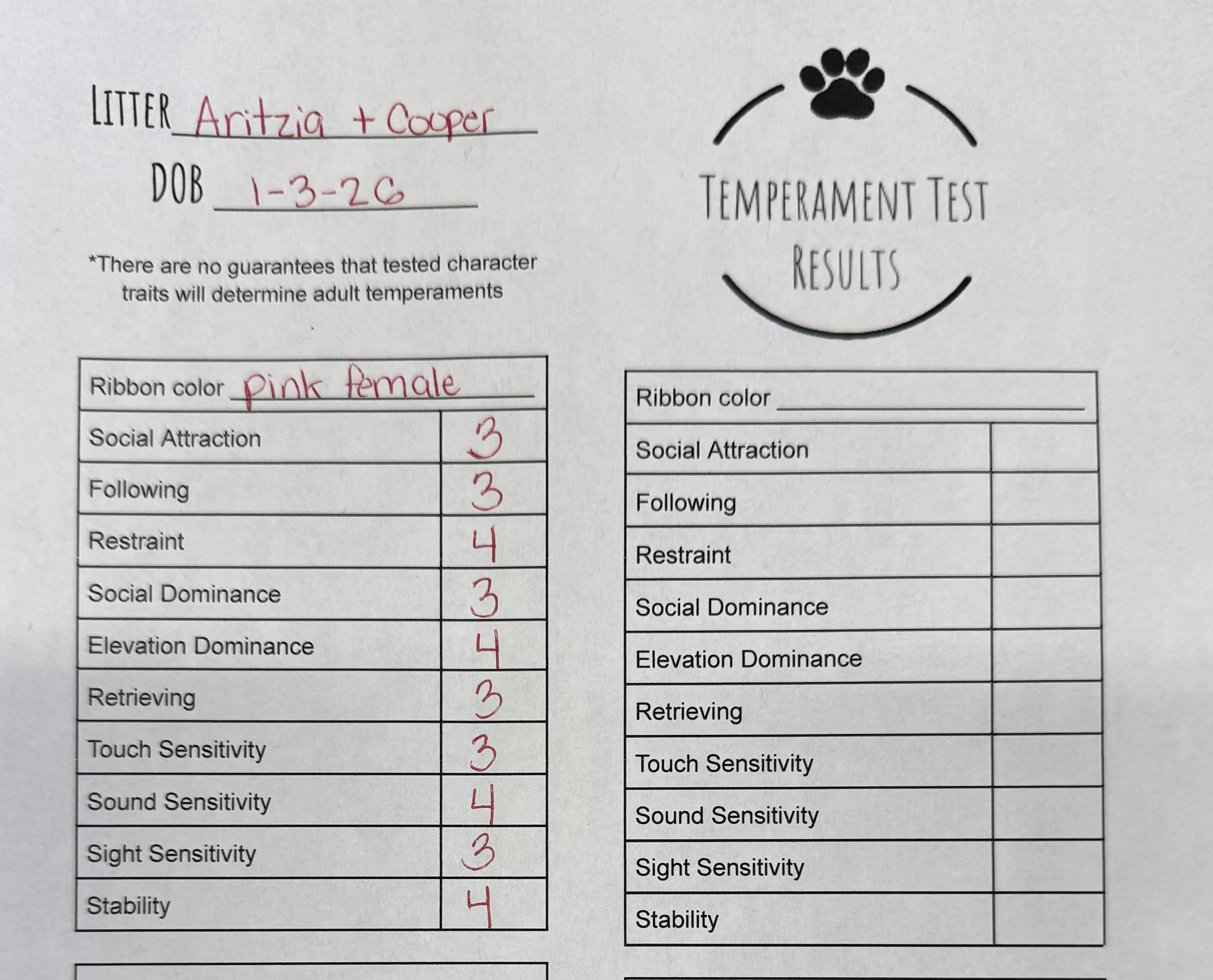 Temperament Test Results