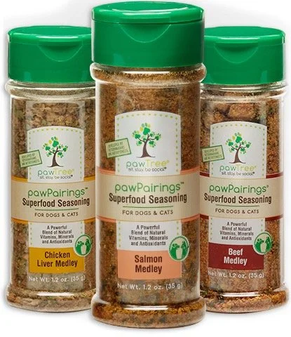 pawPairings Super Food Seasoning adds a boost of delicious nutrients and variety to every meal Each variety includes a consintrated source of 8 fruits and vegtables- Pumpkin, Sweet Potatoes, Kale, Tomatoes, Carrots, Cranberries, Pomegranates, and Blueberries.