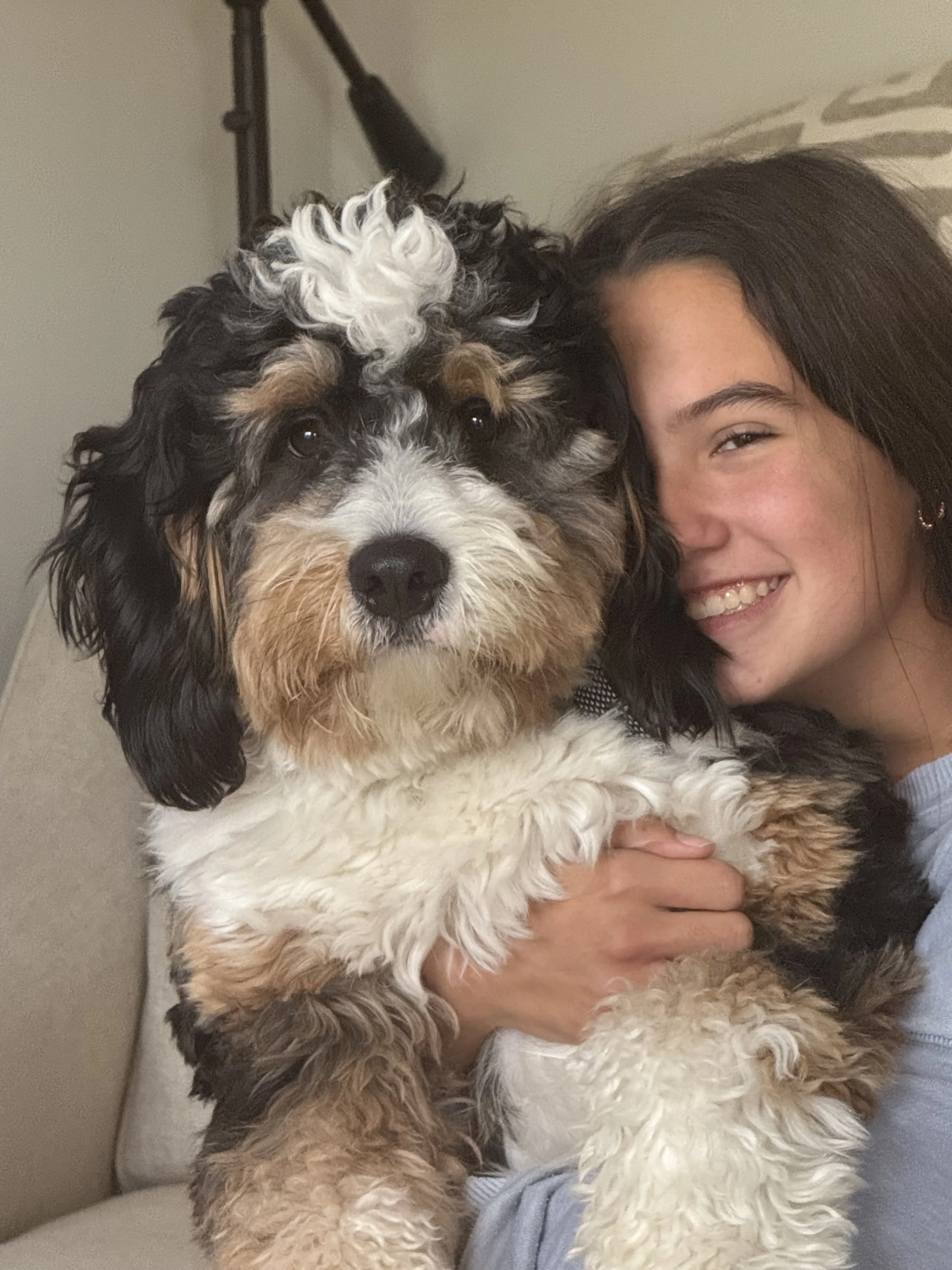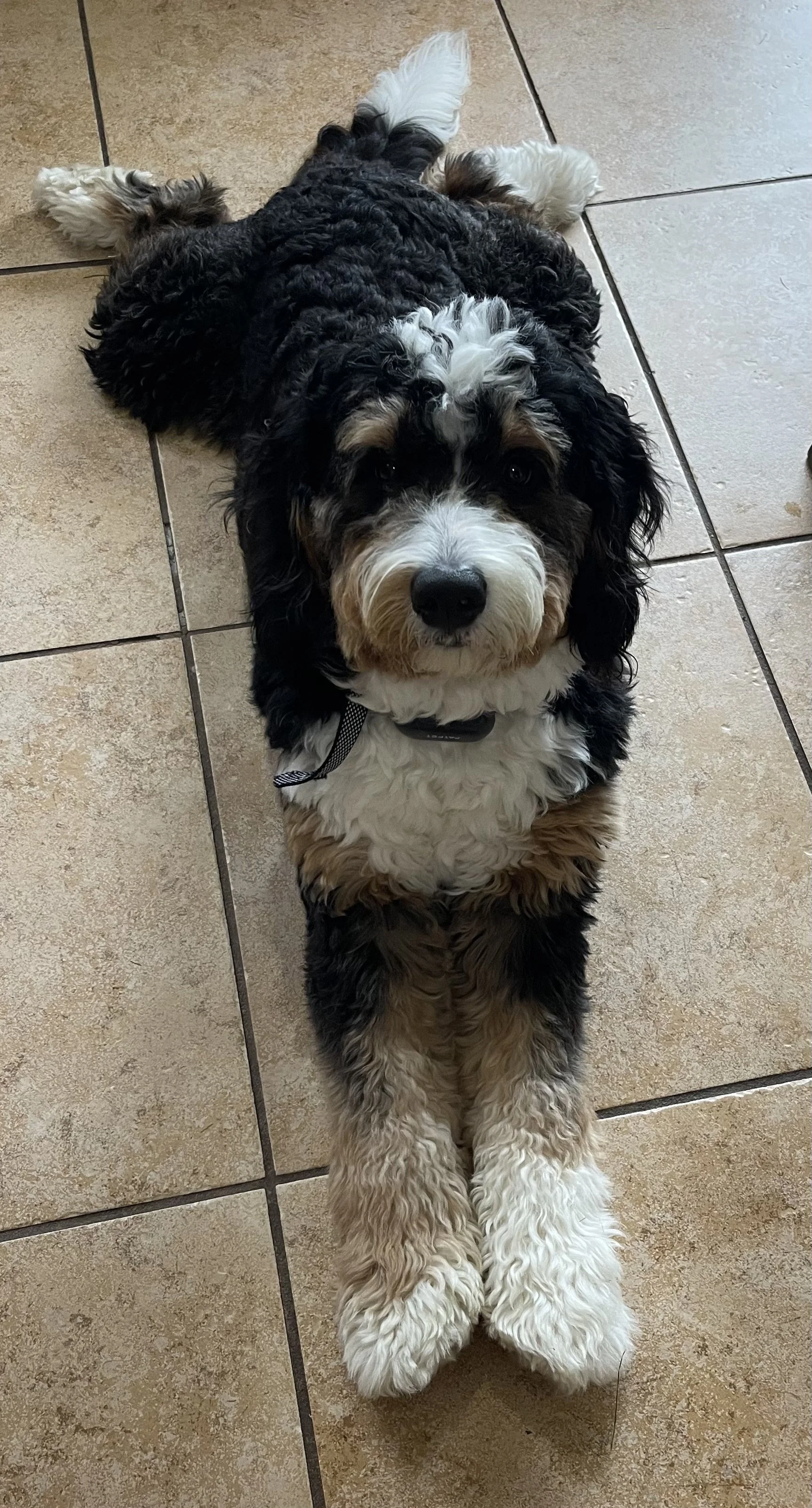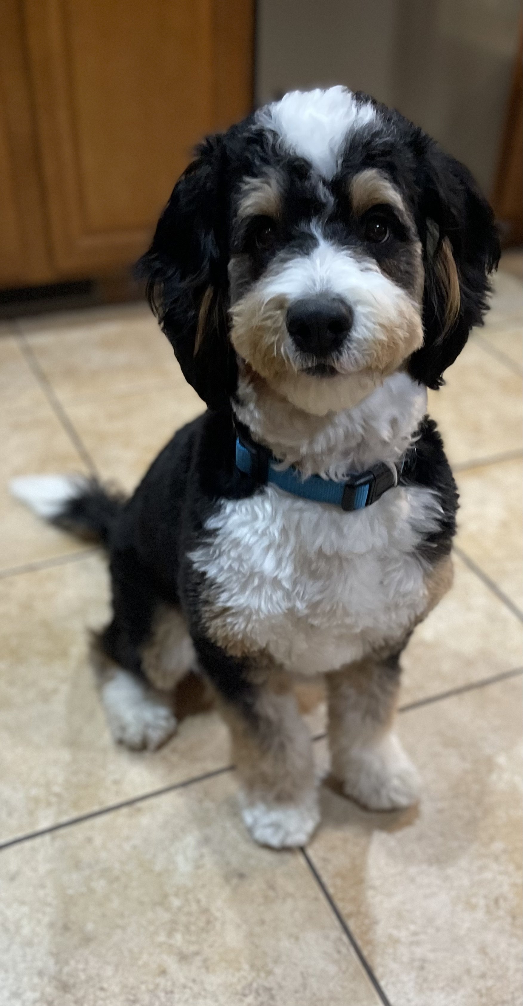 Franklin is an F1 Mini Bernedoodle. She is OFA hips Fair, OFA elbows normal, OFA eyes Normal, OFA heart , OFA patellas . vWD andPRA-PRCD clear through parentage.