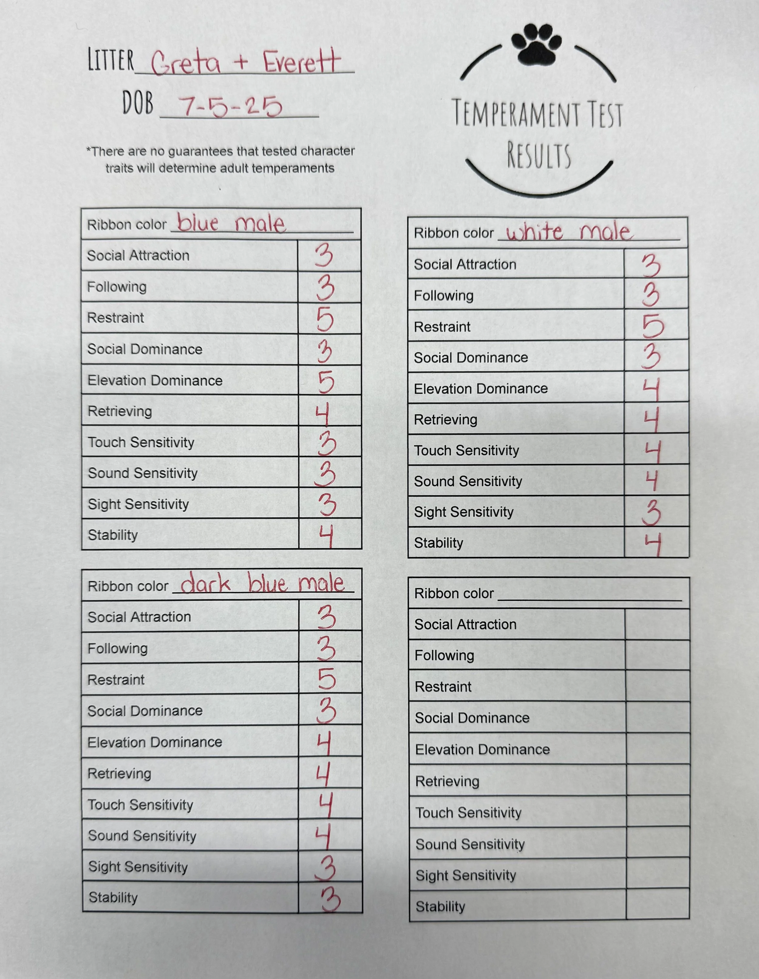 Temperament Test Results