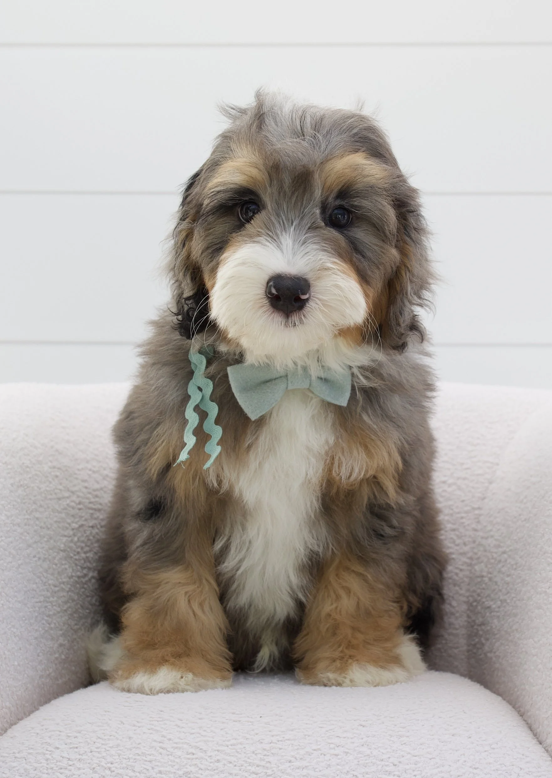 Betty is an F1 standard Bernedoodle. She is available for guardianship! She was born on May 14th. Fully vaccinated. She is crate trained! Email for details.