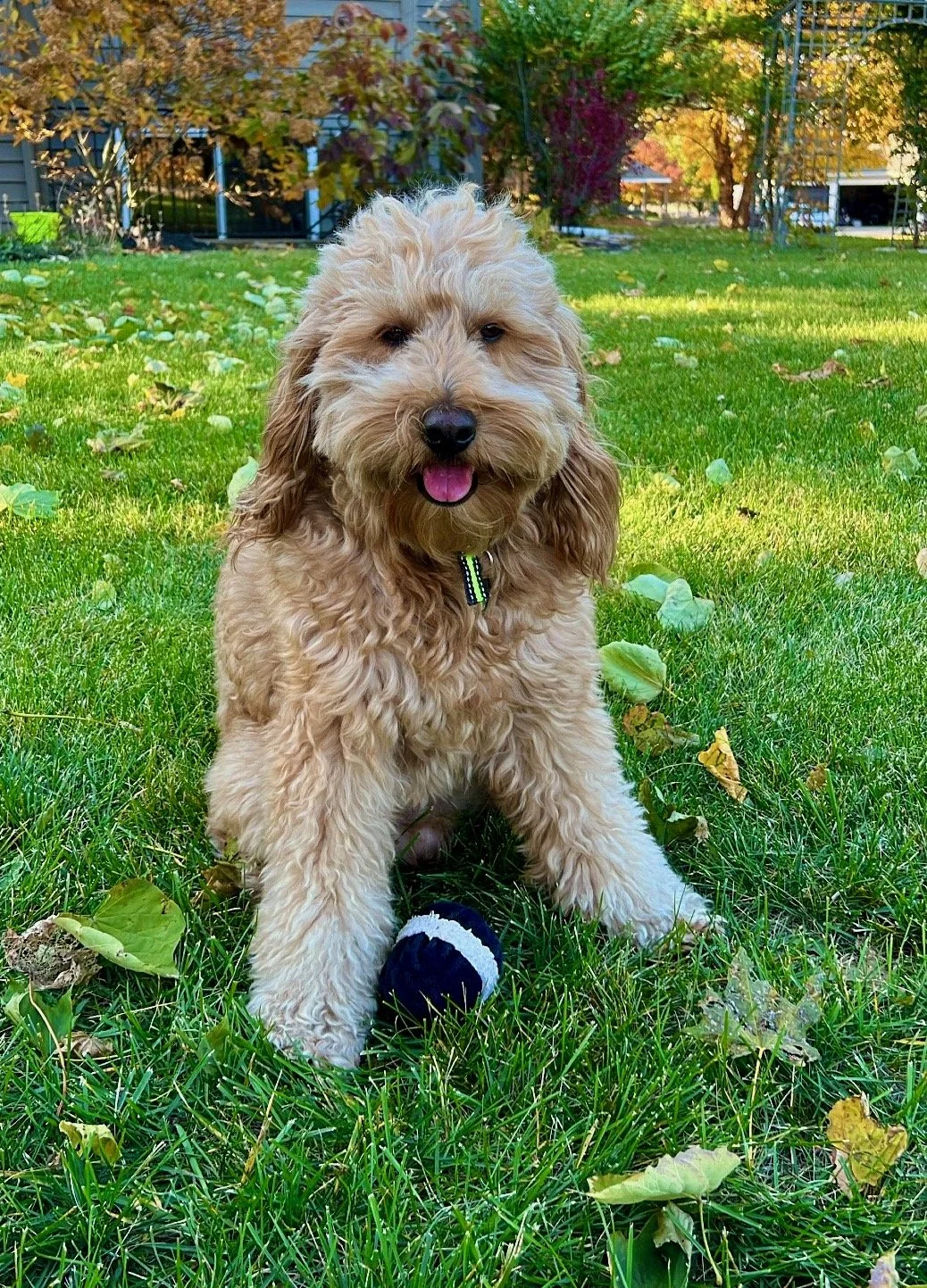 Henry is an F1b Mini English Goldendoodle. OFA Patella, OFA Hips/Elbows, OFA Eyes Normal, OFA Heart Normal. Embark DNA results!