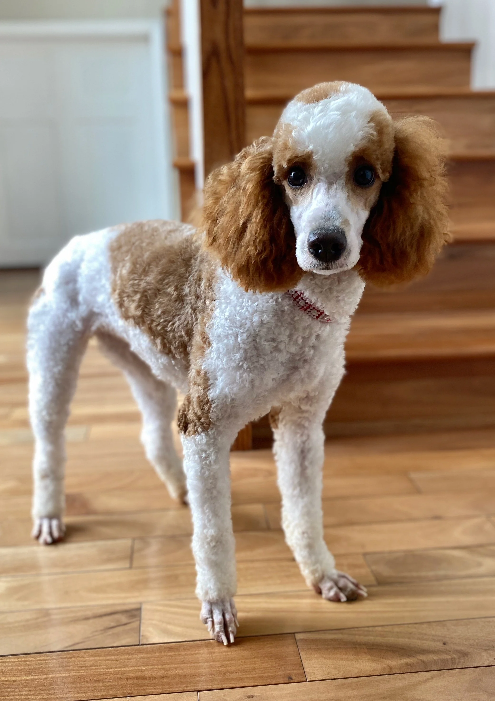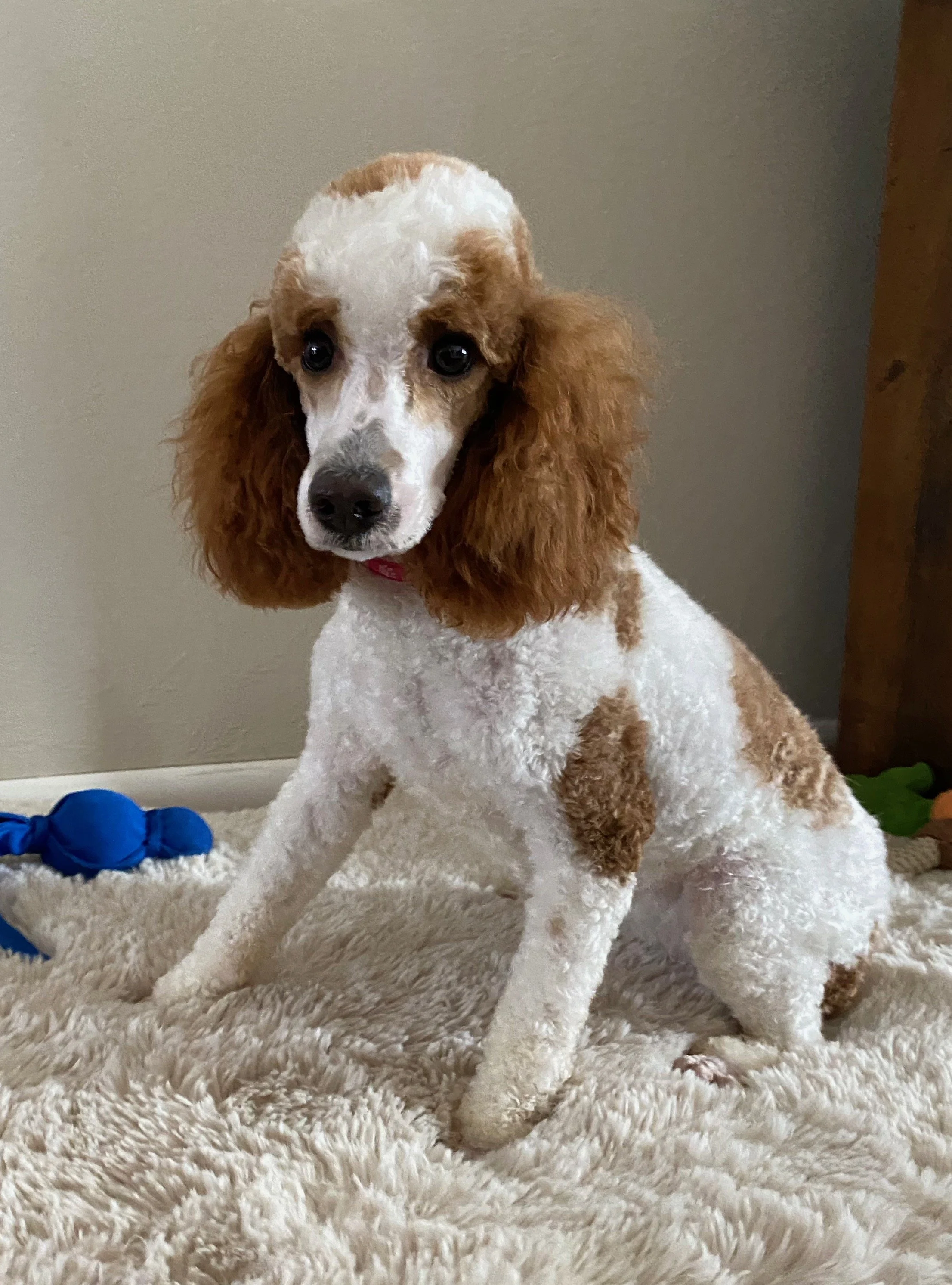 Joy is a Moyen Poodle. She is OFA Hips Excellent, OFA Elbows Normal, OFA Eyes Normal, OFA Heart normal, OFA Patella Normal. vWD, PRA-PRCD, NEWS and DM clear. Embark DNA results!