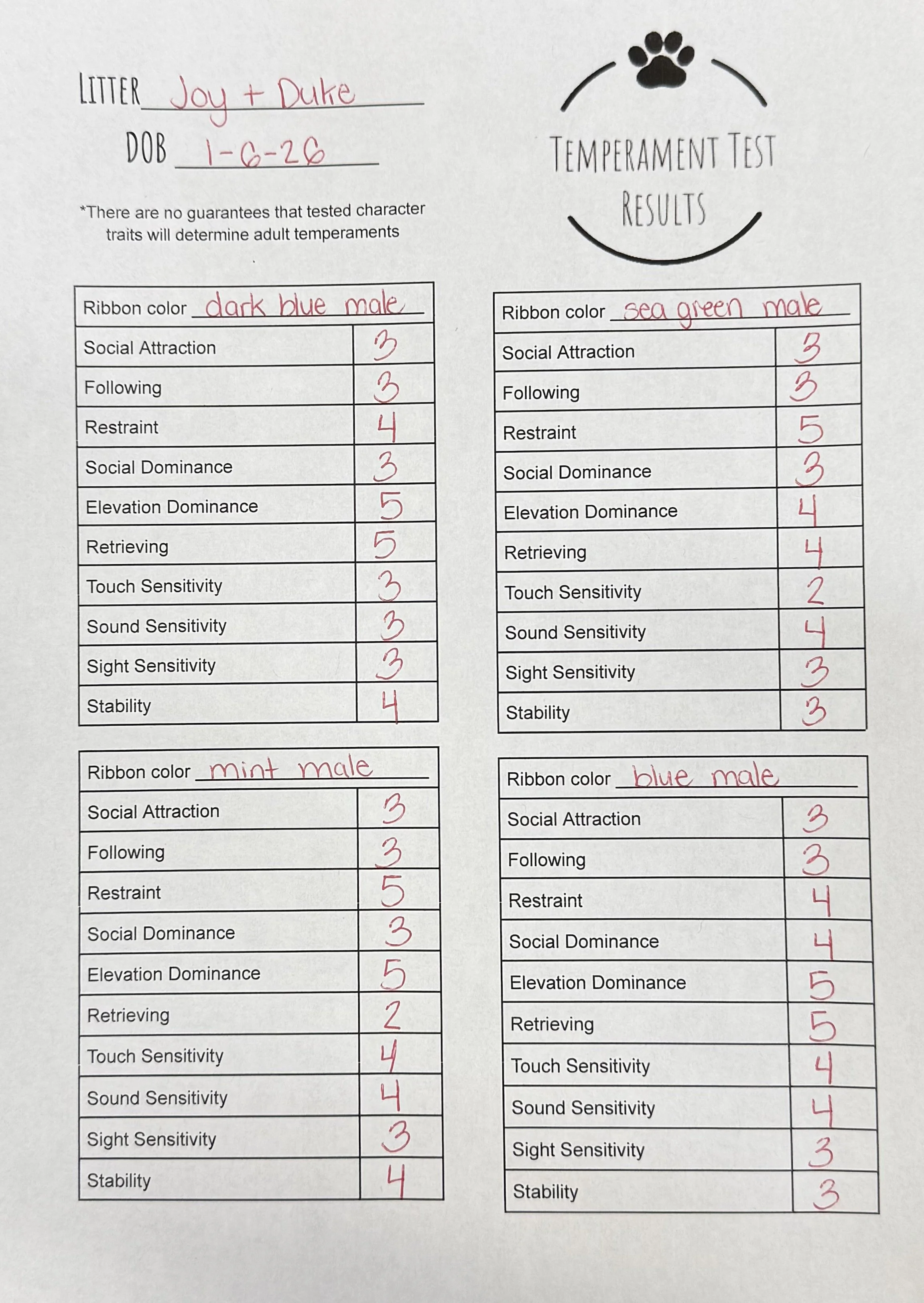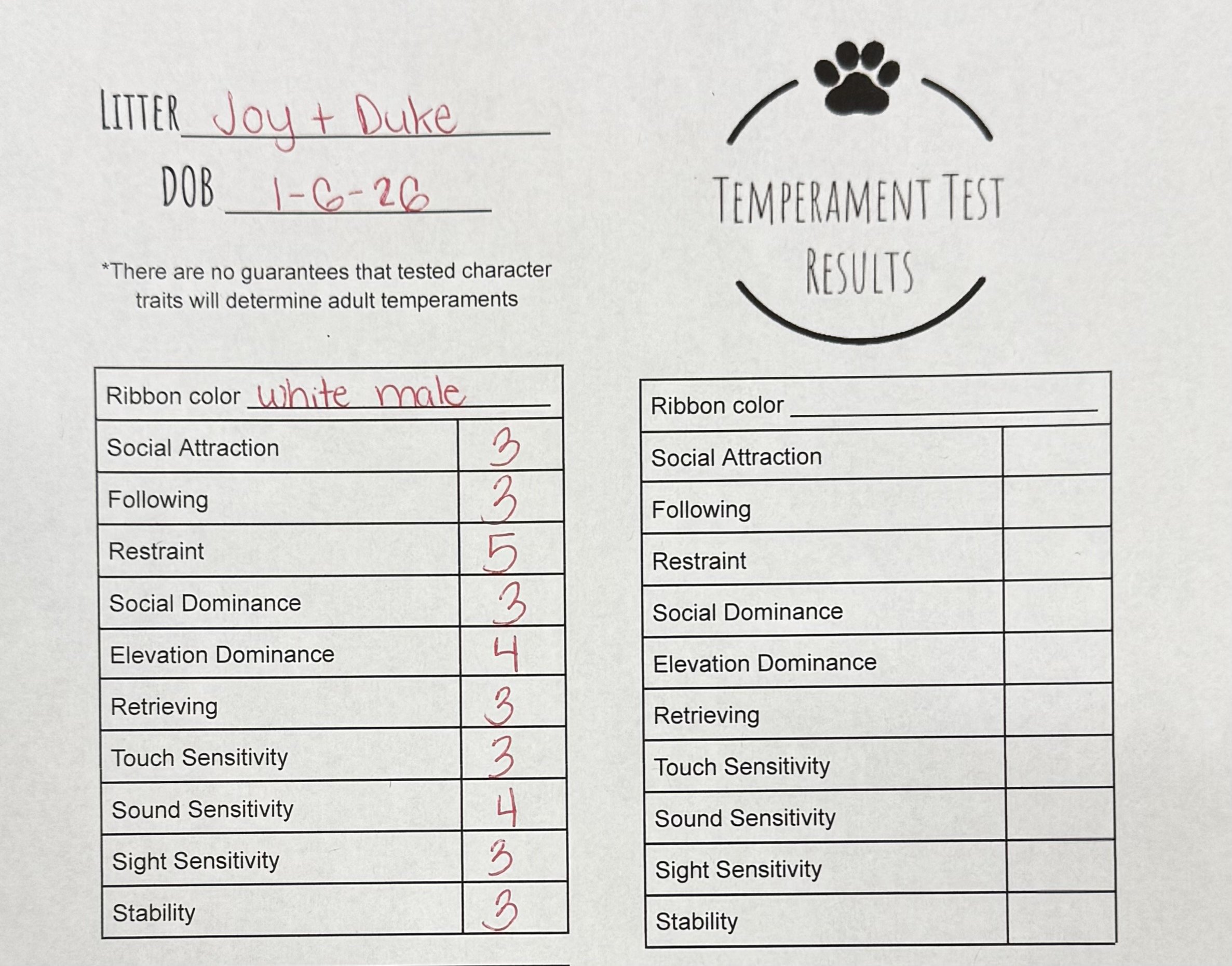 Temperament Test Results