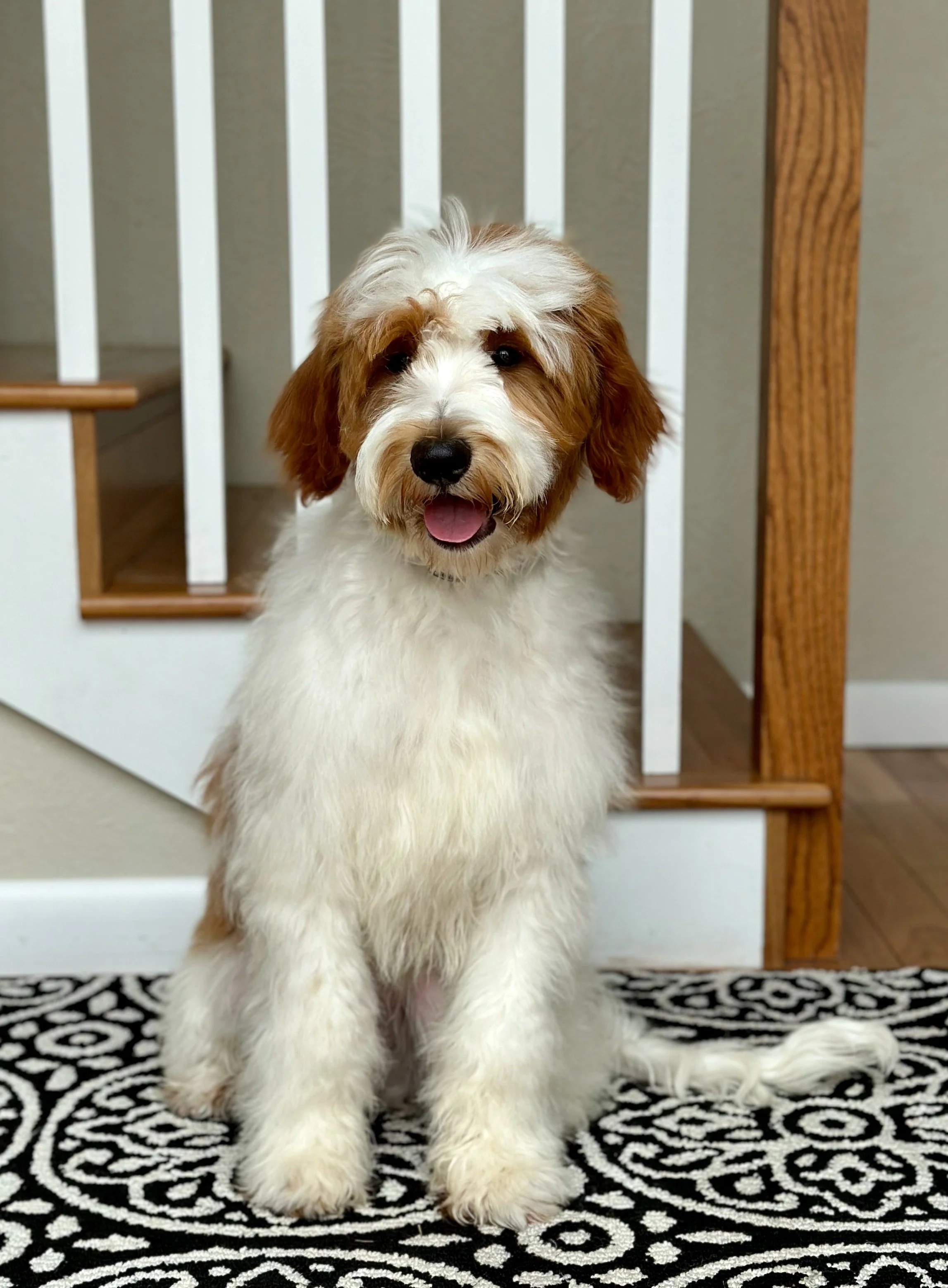 Knox is an F3 Mini/Medium English Goldendoodle. He is OFA Hips Good, OFA Elbows Normal, OFA Heart Normal, OFA Patella Normal, OFA Eyes Normal. vWD, PRA-PRCD and DM clear through parentage.