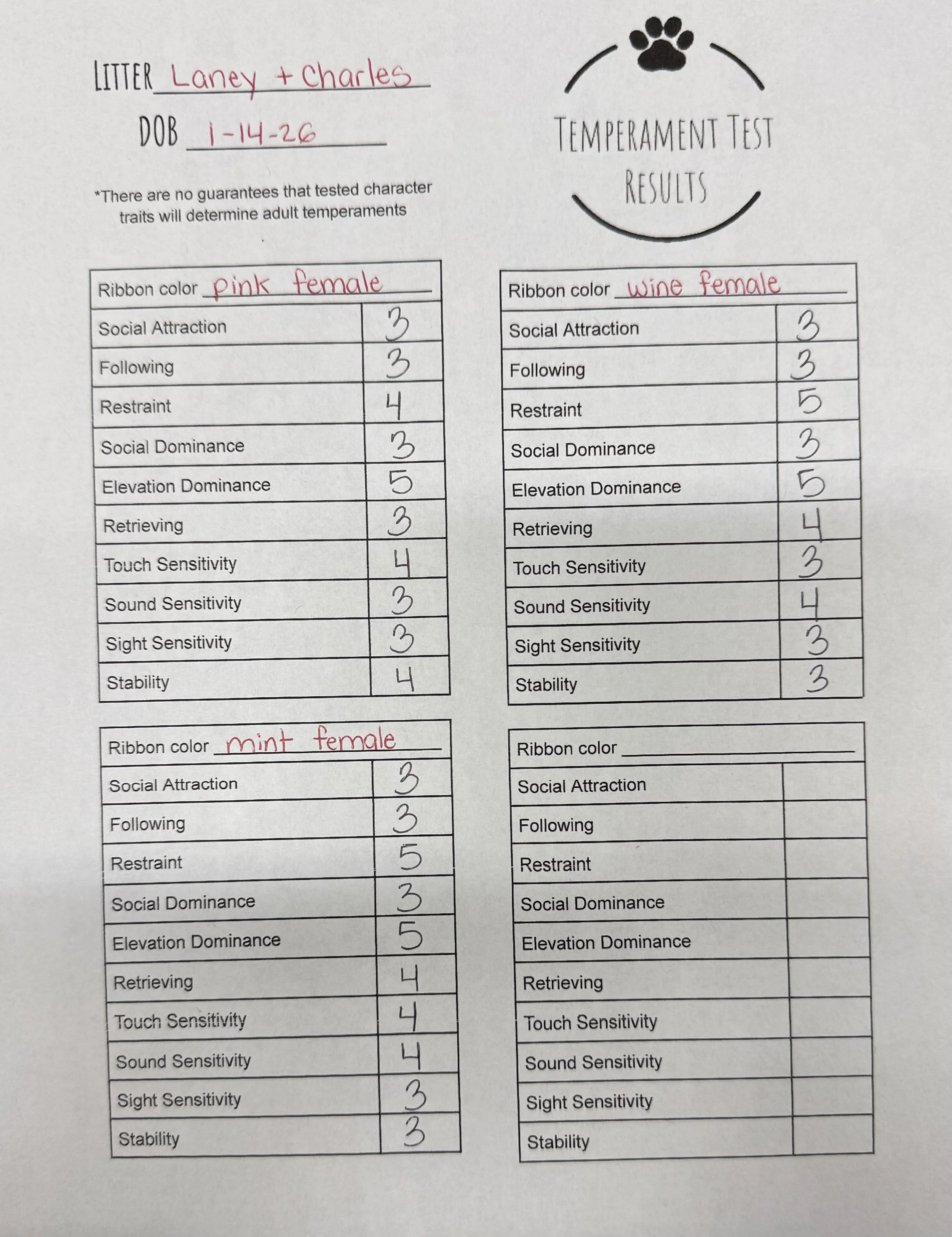 Temperament Test Results