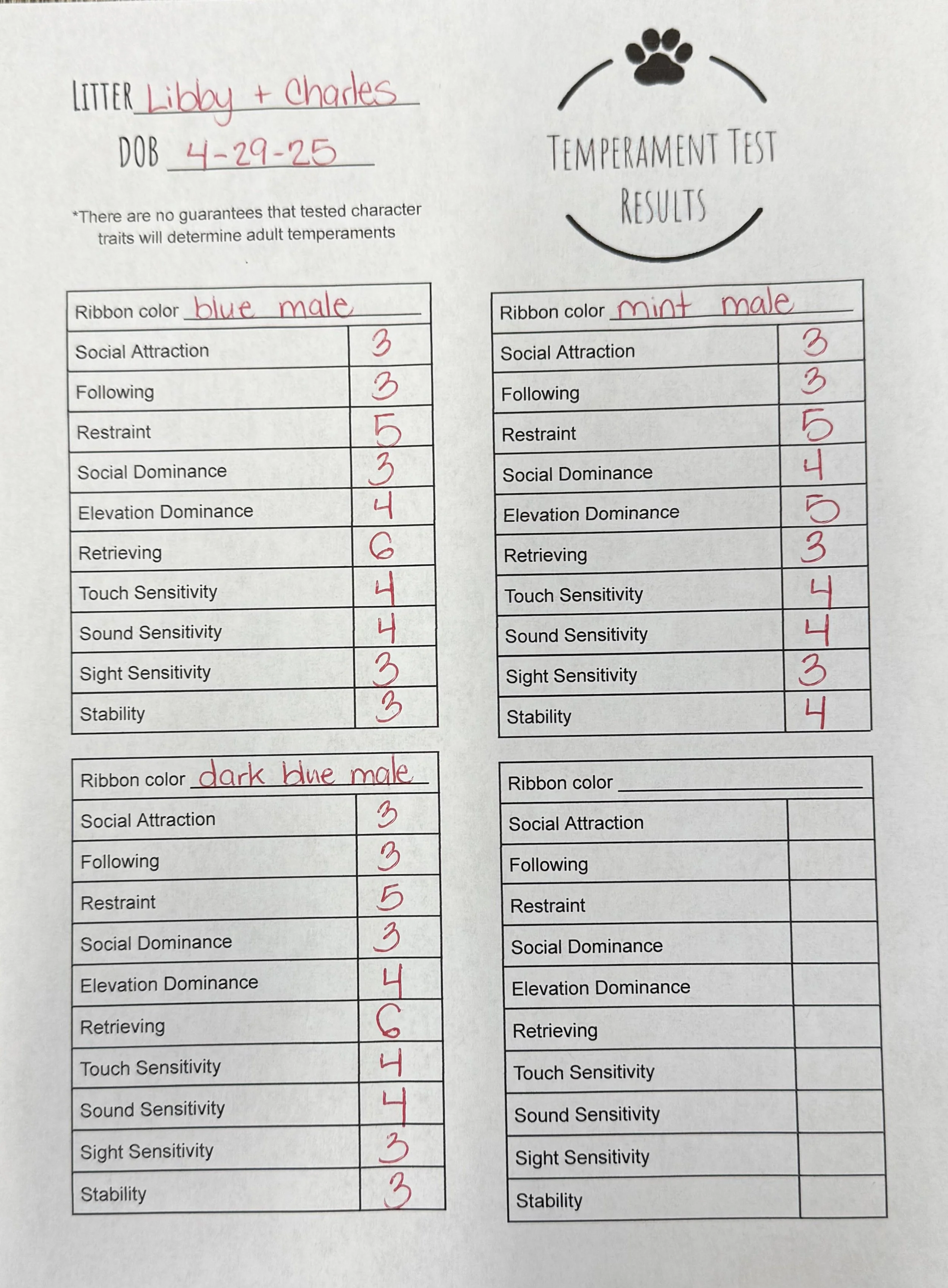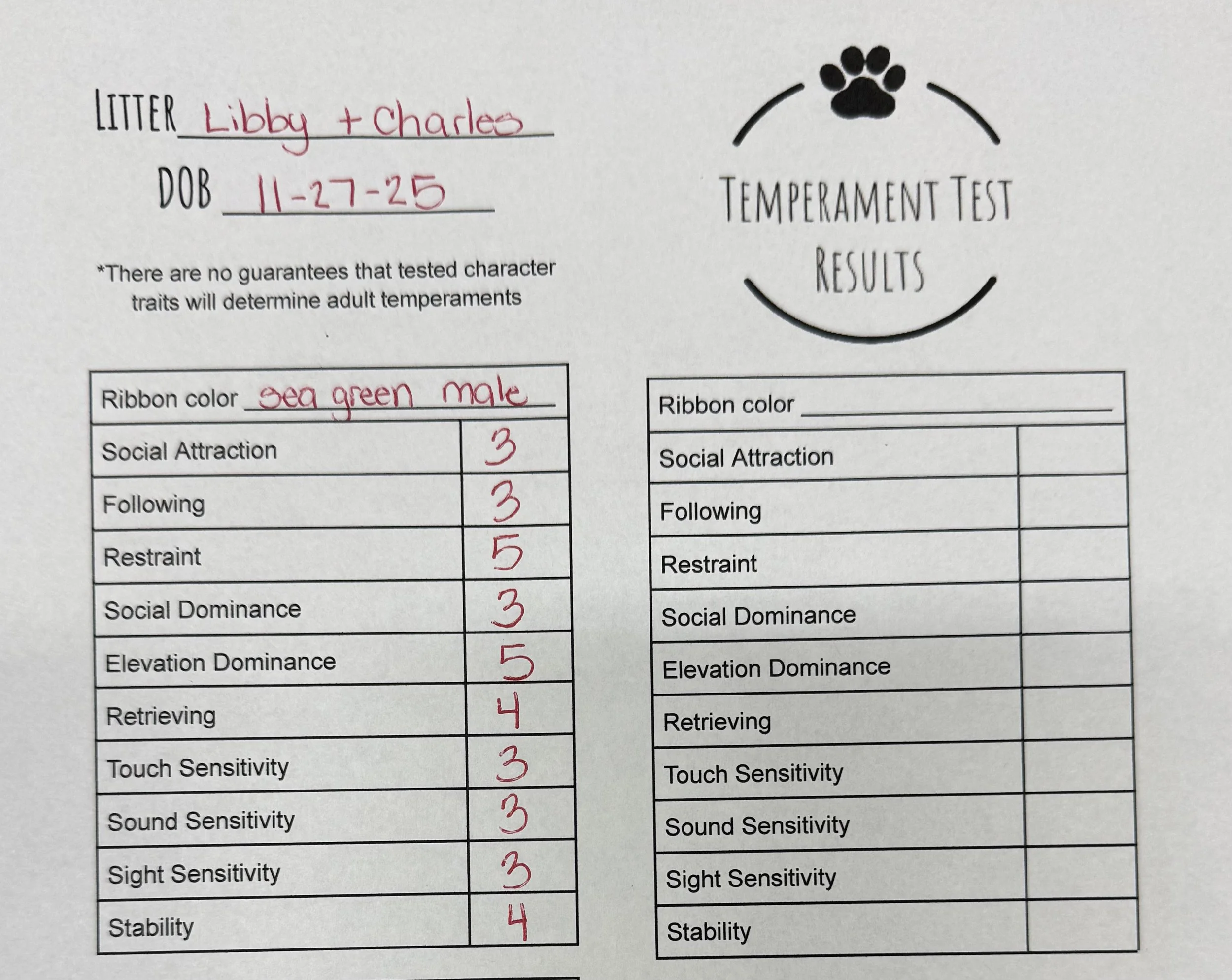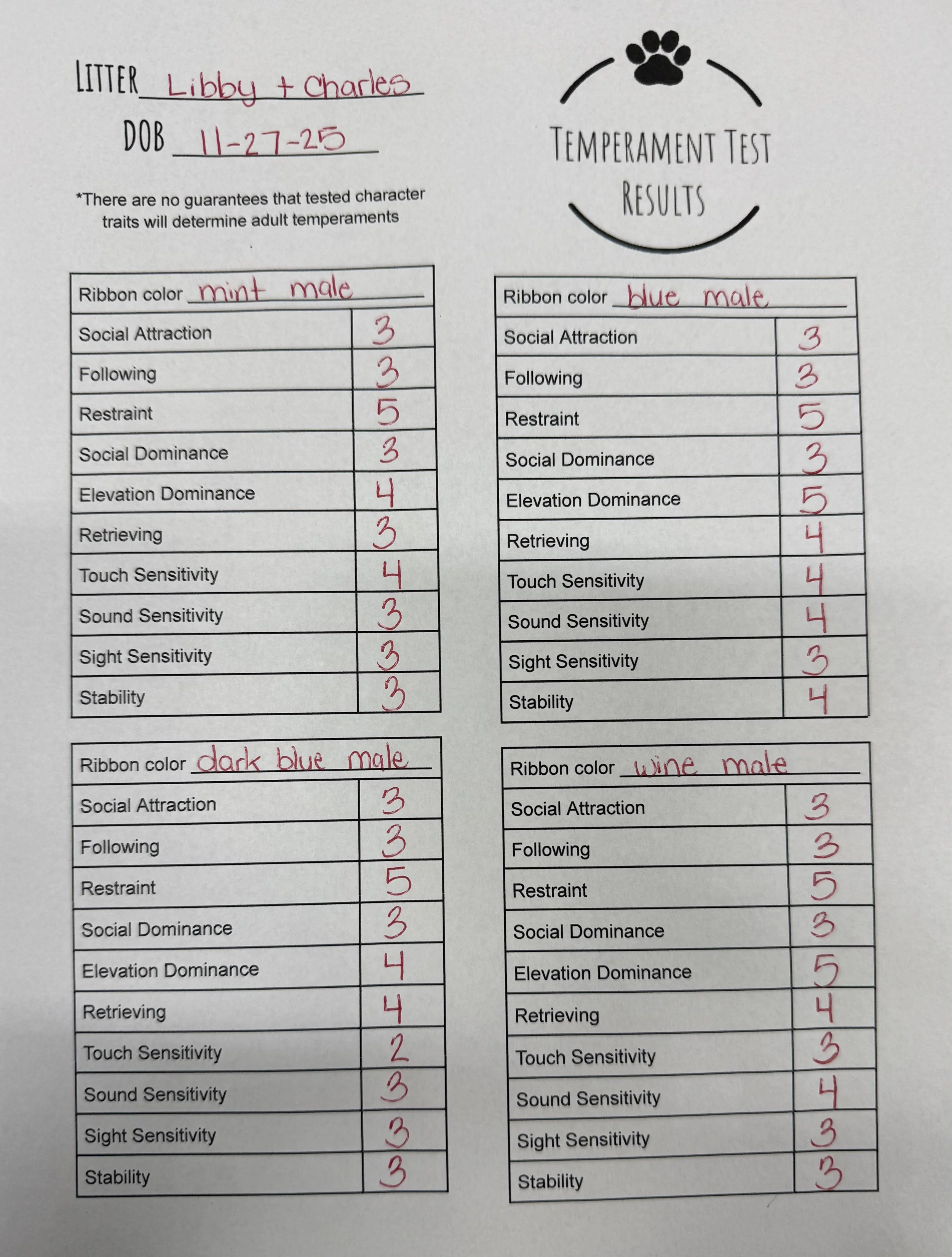Temperament Test Results