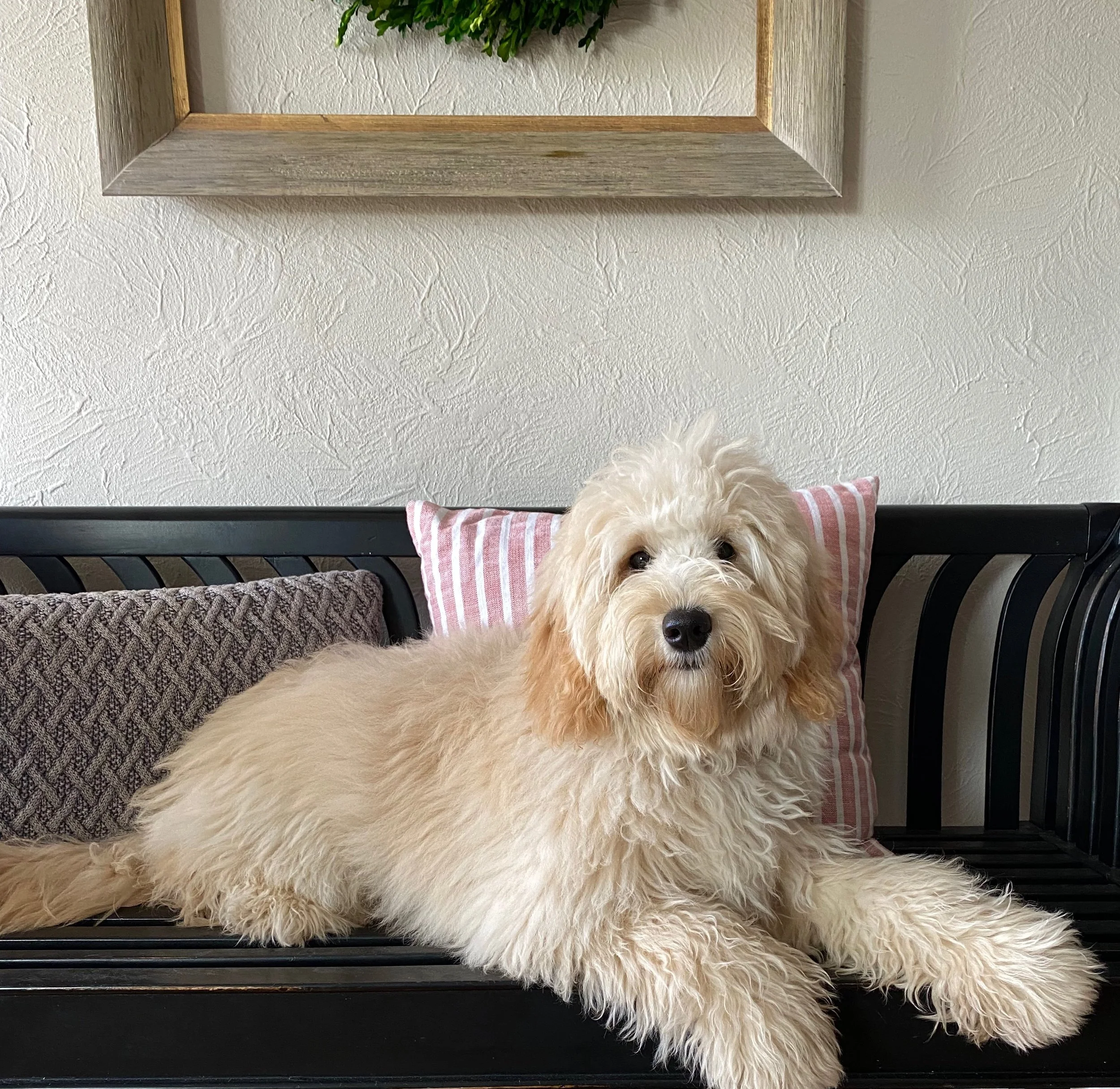 Moxie is an F1b Mini English Goldendoodle. She is OFA Hips Good, OFA Elbows Normal, OFA Heart Normal, OFA Patella Normal, OFA Eyes Normal. vWD, PRA-PRCD and DM clear through parentage. Animal Genetics DNA results!