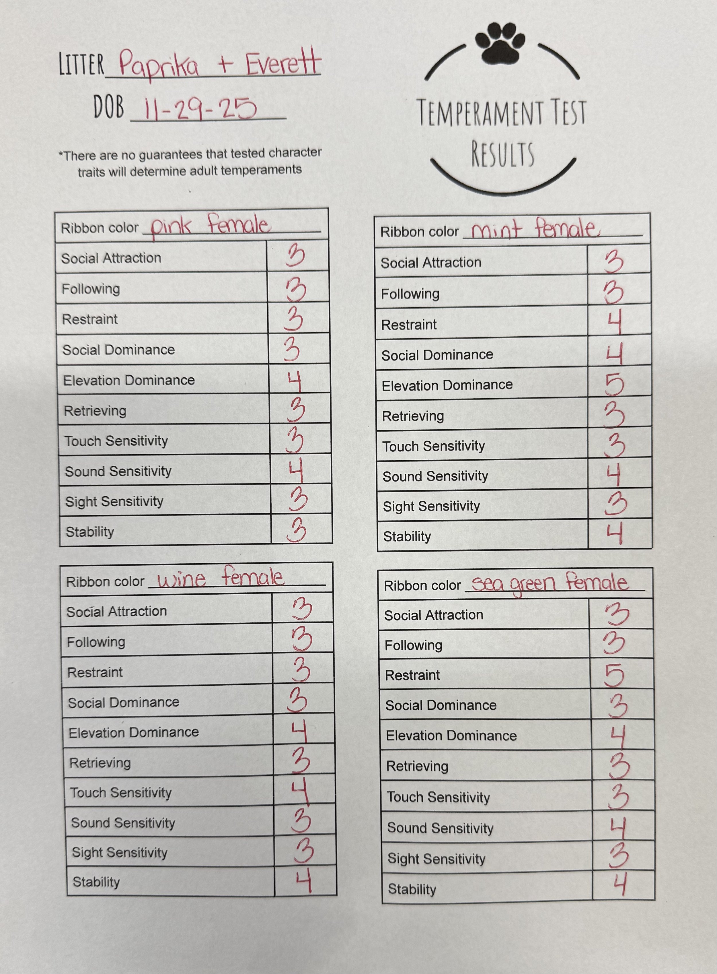 Temperament Test Results