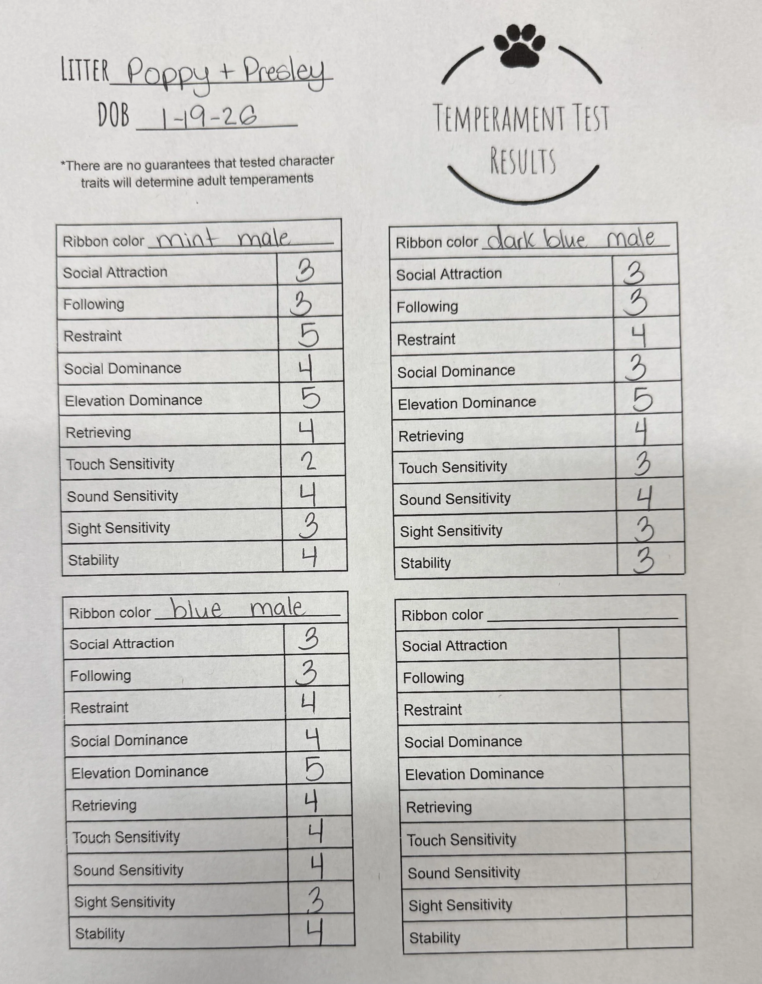 Temperament Test Results