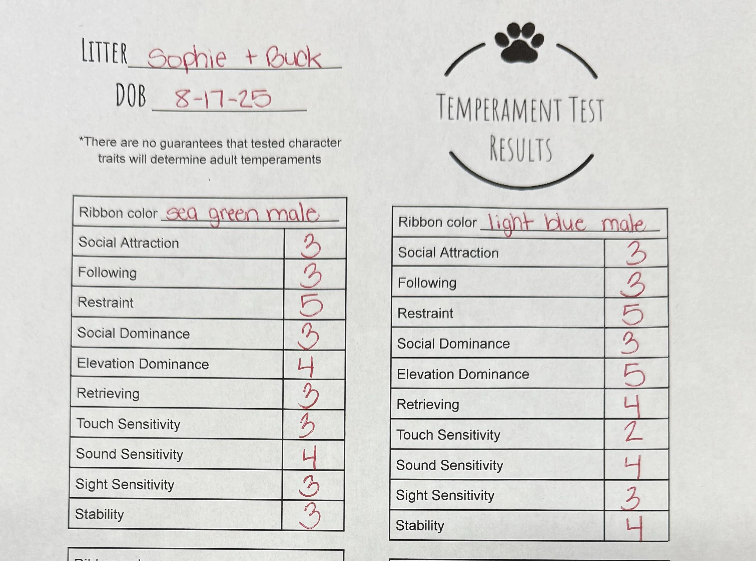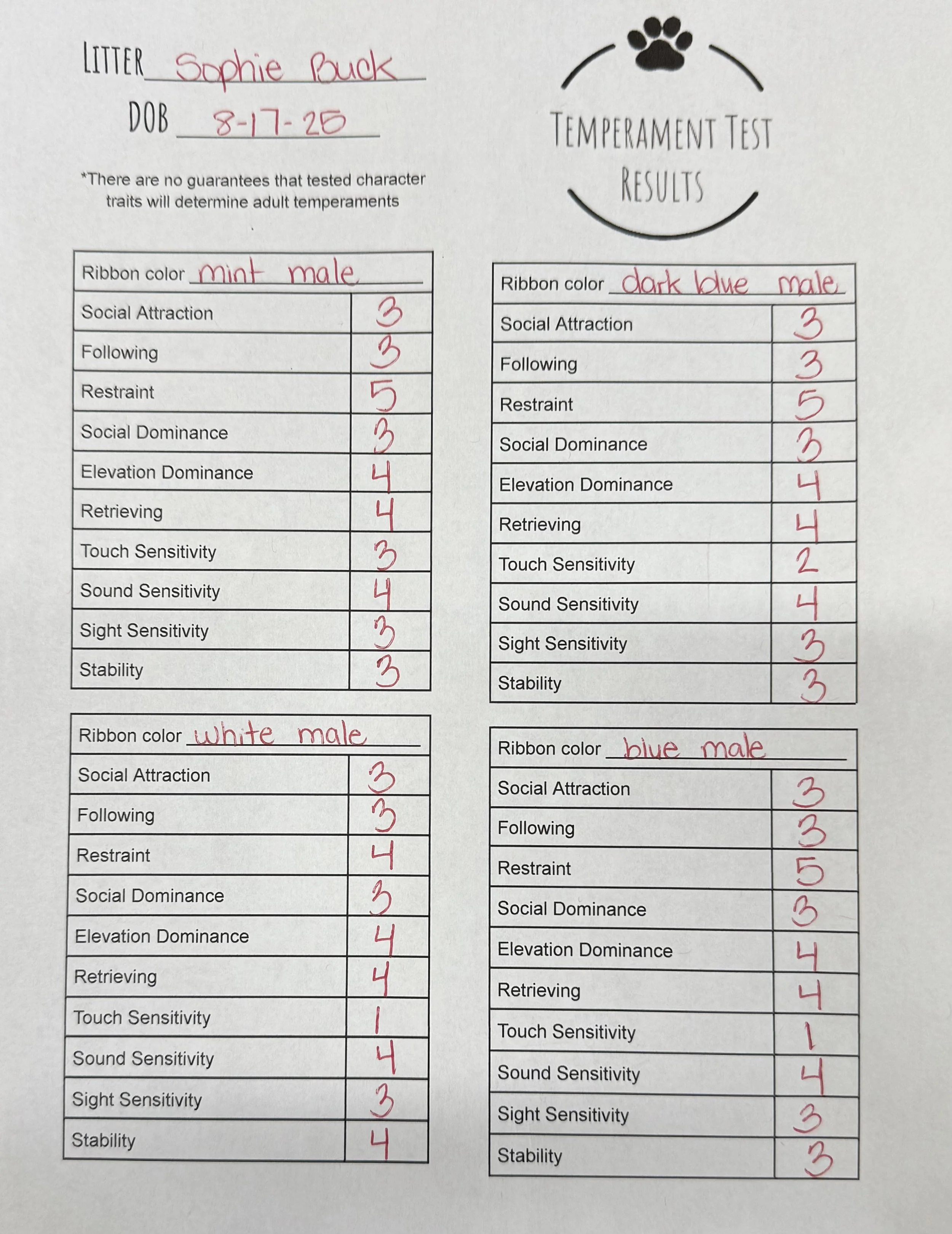 Temperament Test Results