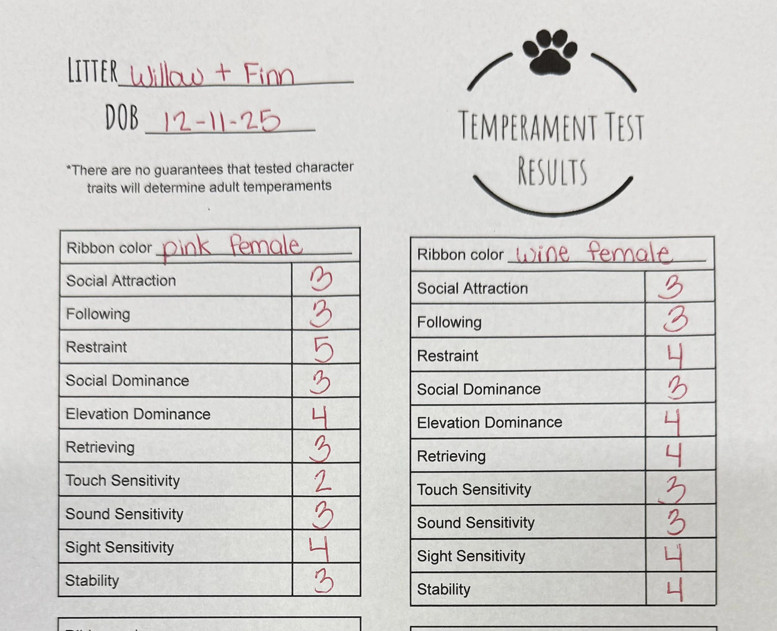 Temperament Test Results